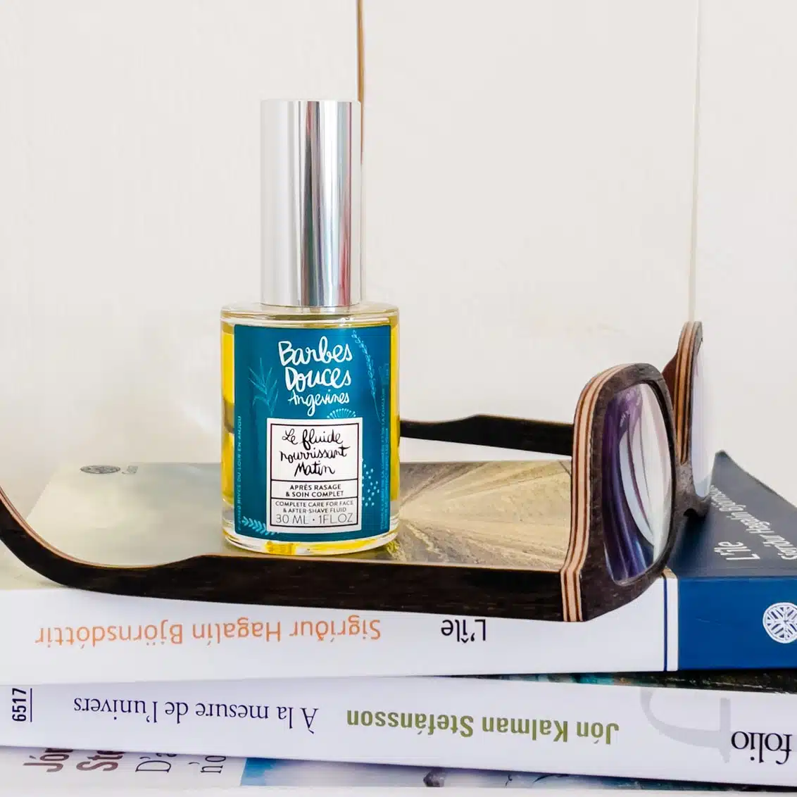 A la fois après-rasage et soin de jour complet pour l’ensemble du visage, Matin est un fluide apaisant, nourrissant, équilibrant et régénérant.